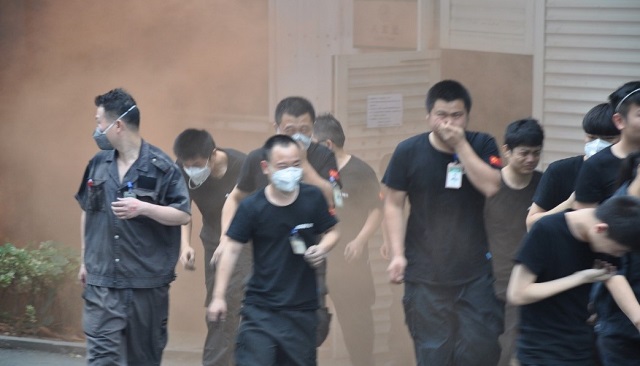 消防警報拉響員工(gōng)有(yǒu)序從通道跑出