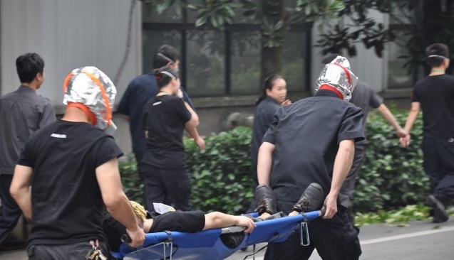 成立搜救小(xiǎo)組對廠區(qū)内未及時逃離火災的受傷受困人員進行搜救,經過仔細尋找搜索,成功搜救出一名(míng)受困者,用(yòng)擔架将其擡出,擡至安(ān)全集散地先進行初步搶救。目的是為(wèi)了培養員工(gōng)的搜救技(jì )能(néng),以及安(ān)全意識。