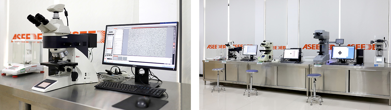 公(gōng)司具(jù)備硬質(zhì)合金,金屬材料的物(wù)理(lǐ)性能(néng)、化學(xué)成分(fēn)的分(fēn)析測試能(néng)力,包括金相分(fēn)析,密度,硬度,抗彎強度,孔隙度和非化合碳,钴磁,磁力,拉伸強度,沖擊功等。